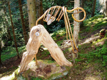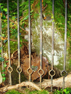 Als ich den Platz für diese Station aussuchte, war ich beeindruckt von dem dunklen Felsen, der wie ein Grabstein vor mir stand, schwer und bedrückend. Zugleich wurde mein Blick auch nach oben gelenkt und von der Helligkeit des Himmels zwischen den Bäumen geblendet.