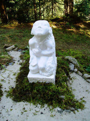 Der Mensch kommt nackt auf diese Welt, er ist nackt und verletzlich. Die Figur wird aus dem Stein geboren.
