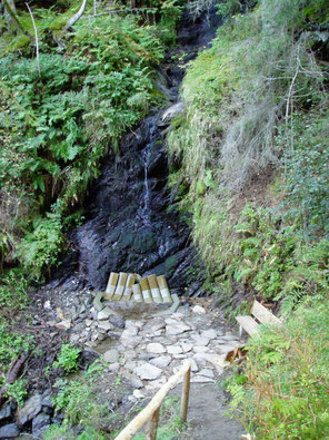 Wenn man direkt vor dem Wasserfall steht, erkennt man mit etwas Phantasie im oberen Teil ein Herz, aus dem Wasser fließt, das darunter am Felsen versprüht und sich so verteilt. Durch diese starke Aussagekraft habe ich lange gezögert hier etwas zu verändern. Erst als der Weg angelegt wurde, habe ich mich entschlossen,