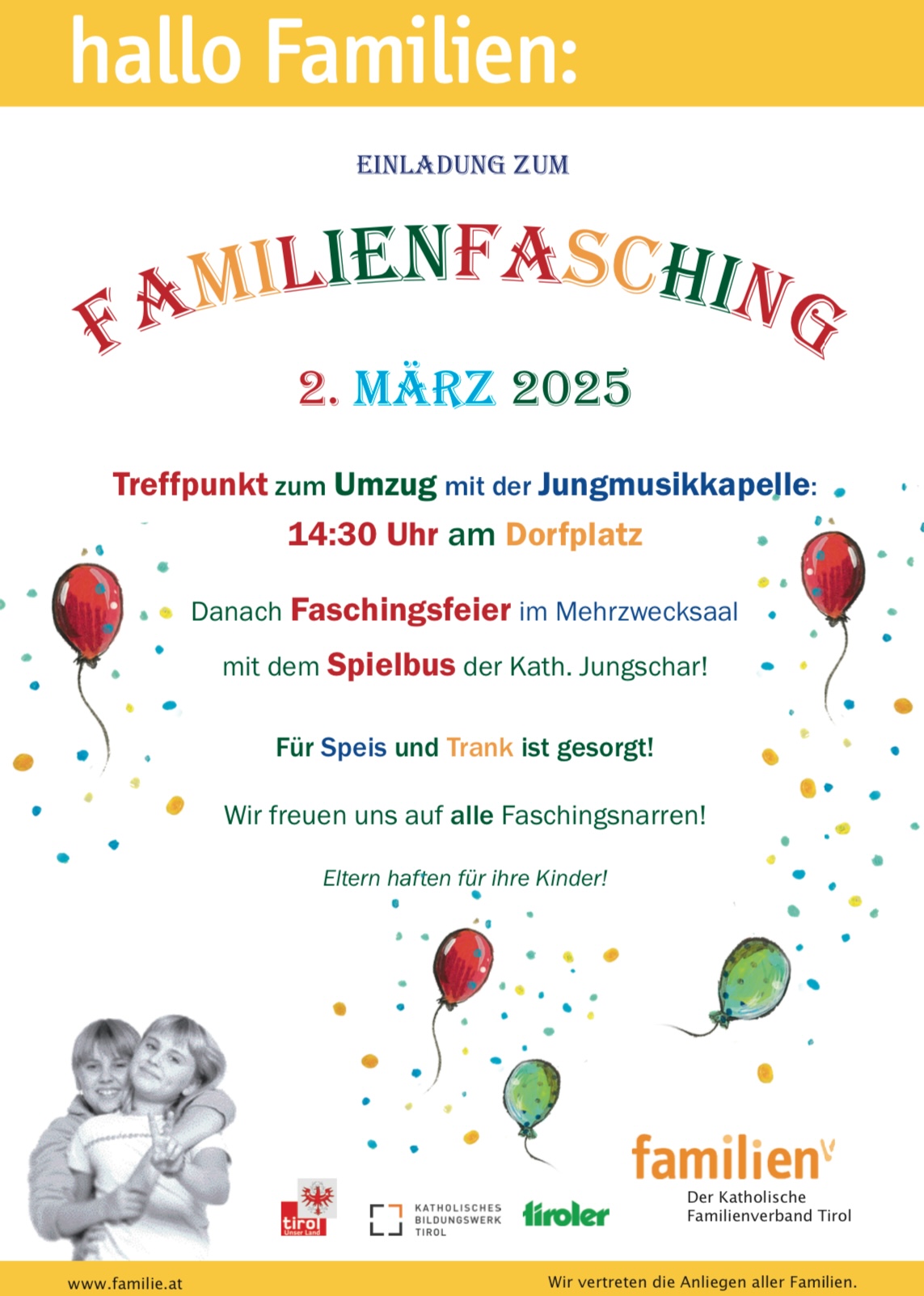 Der Katholische Familienverband Ranggen lädt herzlich zum Familienfasching ein.
